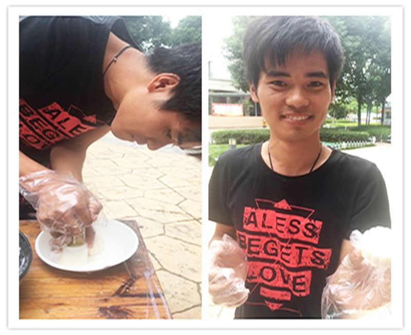 品嘗月餅也是中秋節的習俗之一,如果能品嘗自己親手制作的月餅,這個中秋節肯定更加難忘?;顒拥诙椌褪侵谱鞅ぴ嘛?,大家一邊自己動手和冰皮、包餡、壓花定型,一邊相互交流著關于中秋和月餅的故事。看似簡單的制作過程,要做出漂亮的月餅也讓大家費了不少心思。有些止不住饞的小伙伴,還沒等做完就迫不及待的嘗鮮了,也有些舍不得吃的,說要帶回家與家人分享。