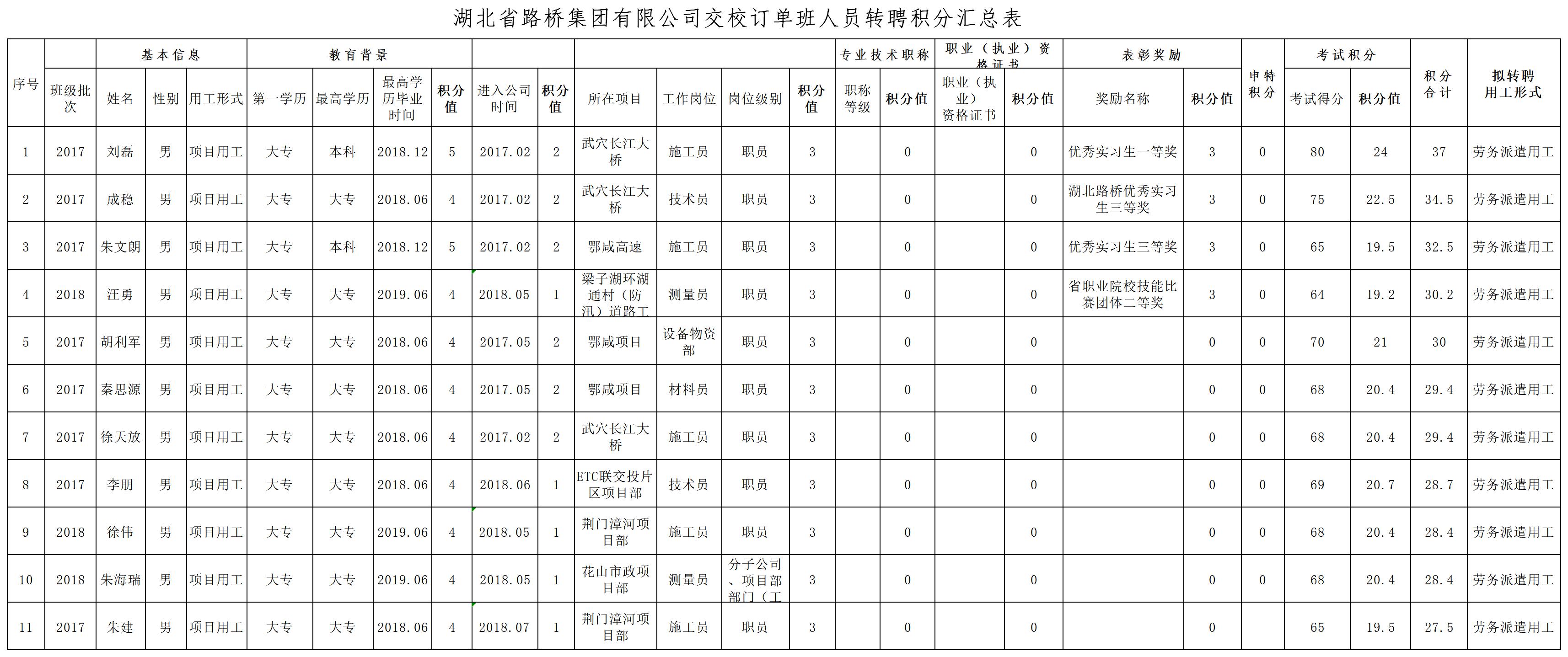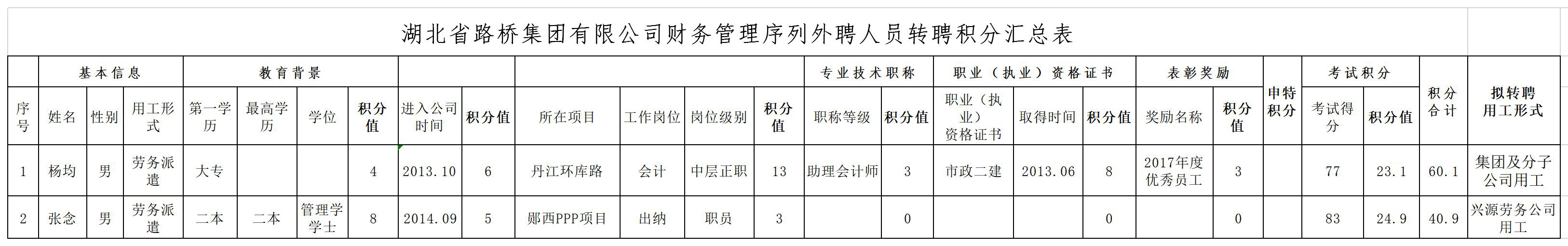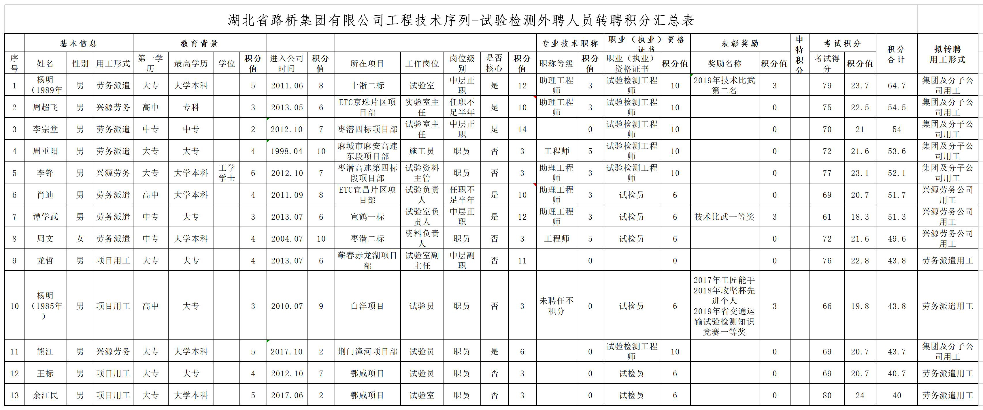 湖北省路橋集團有限公司2019年擬轉聘人員公示